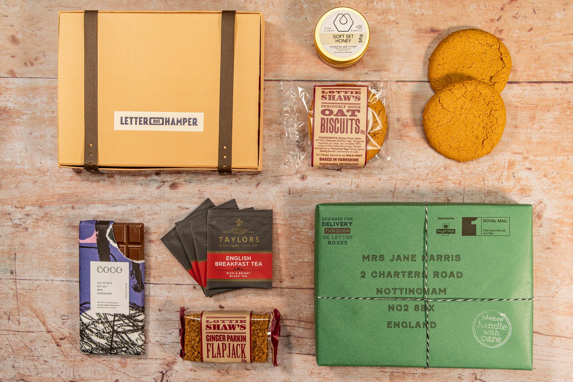 We carefully wrap all our postal hampers by hand, using beautiful, traditional packaging, parcel paper, twine and ink stamps.